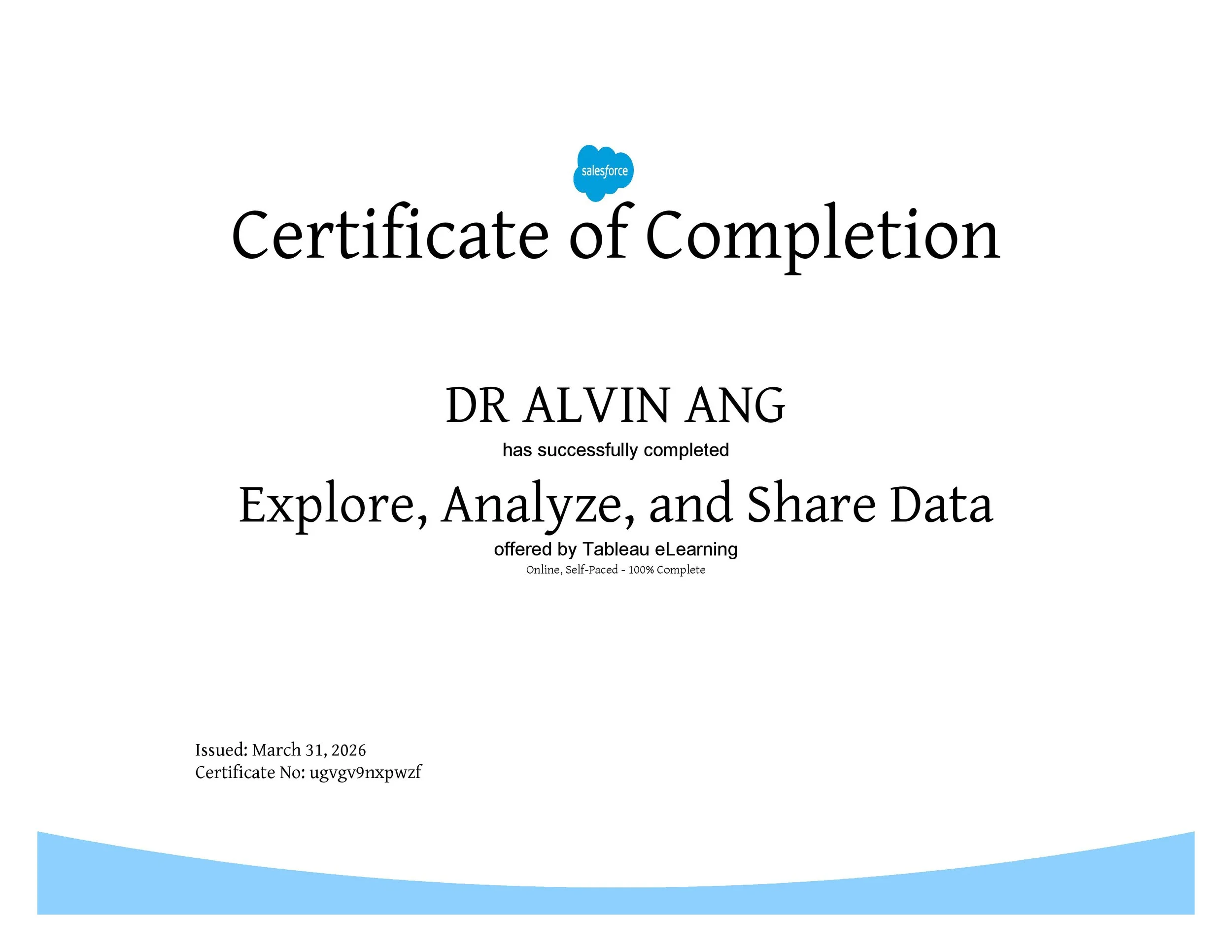 Tableau Certificate - Explore, Analyze and Share Data (2026)