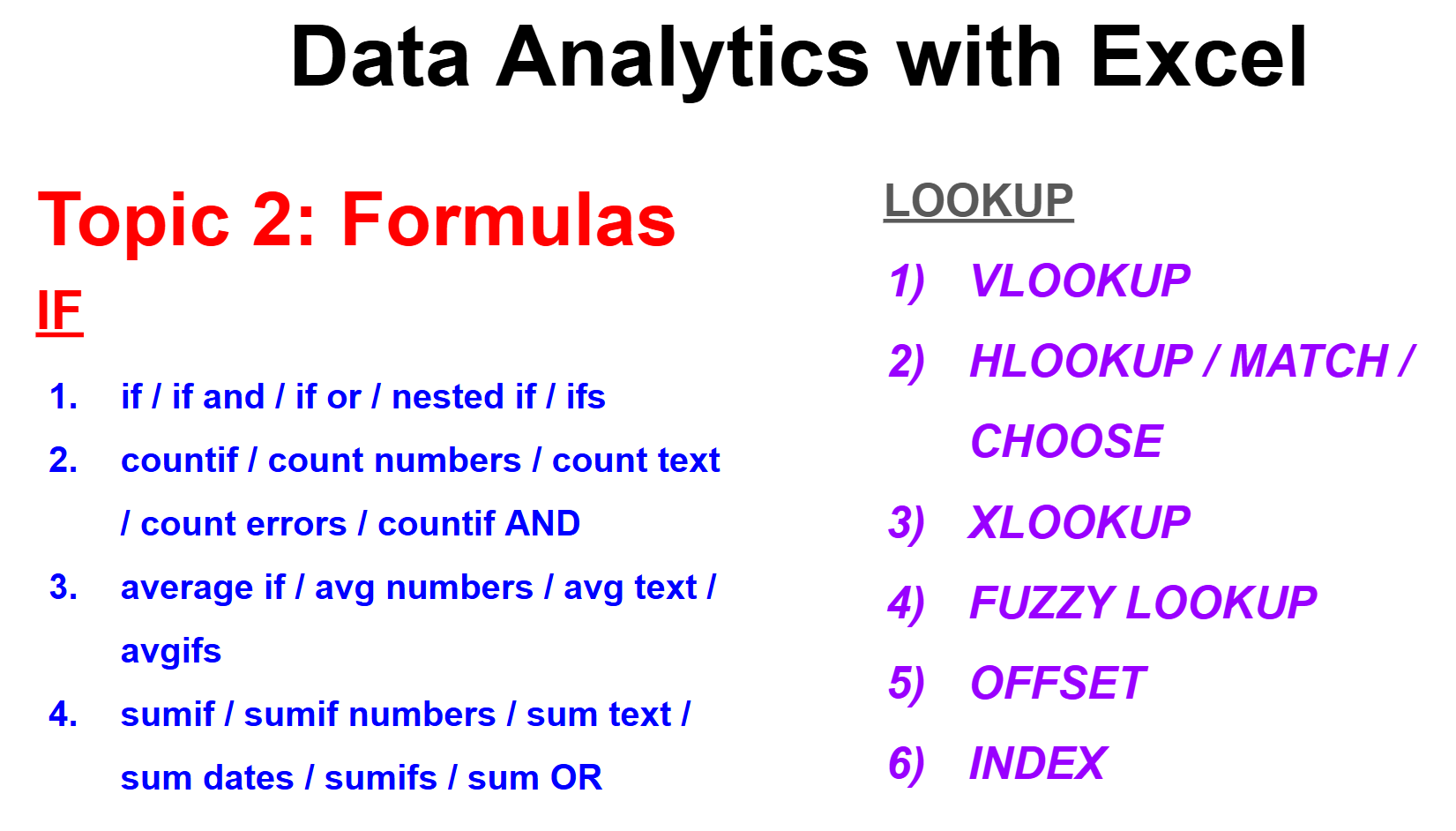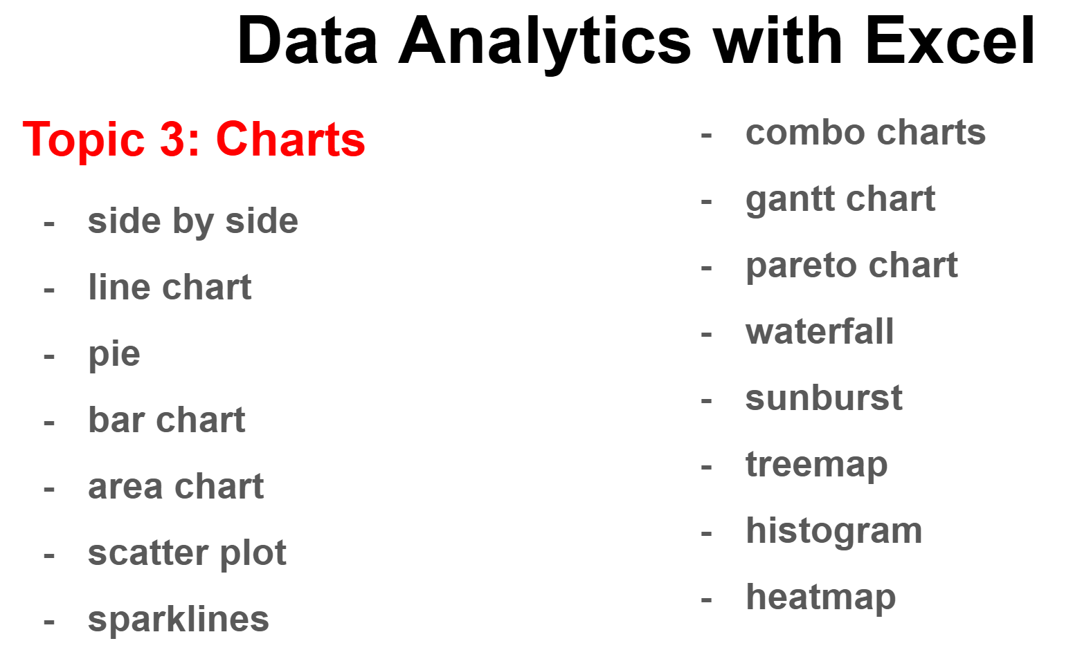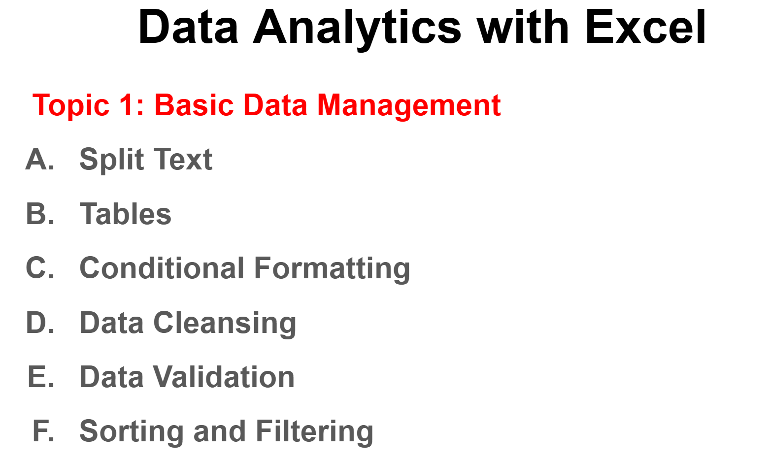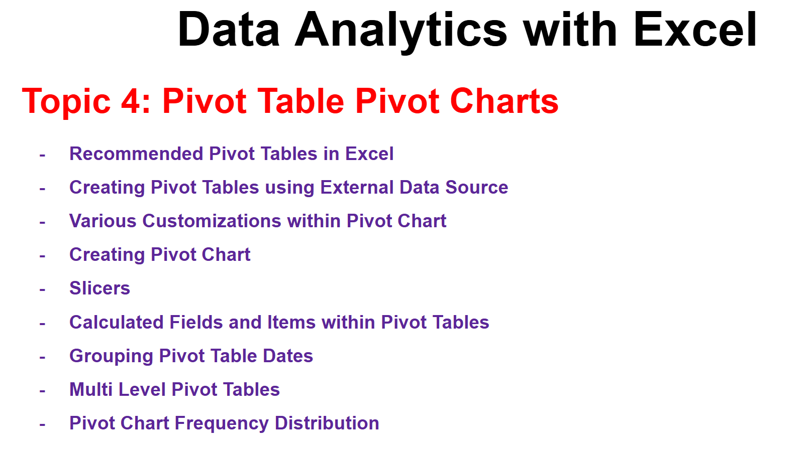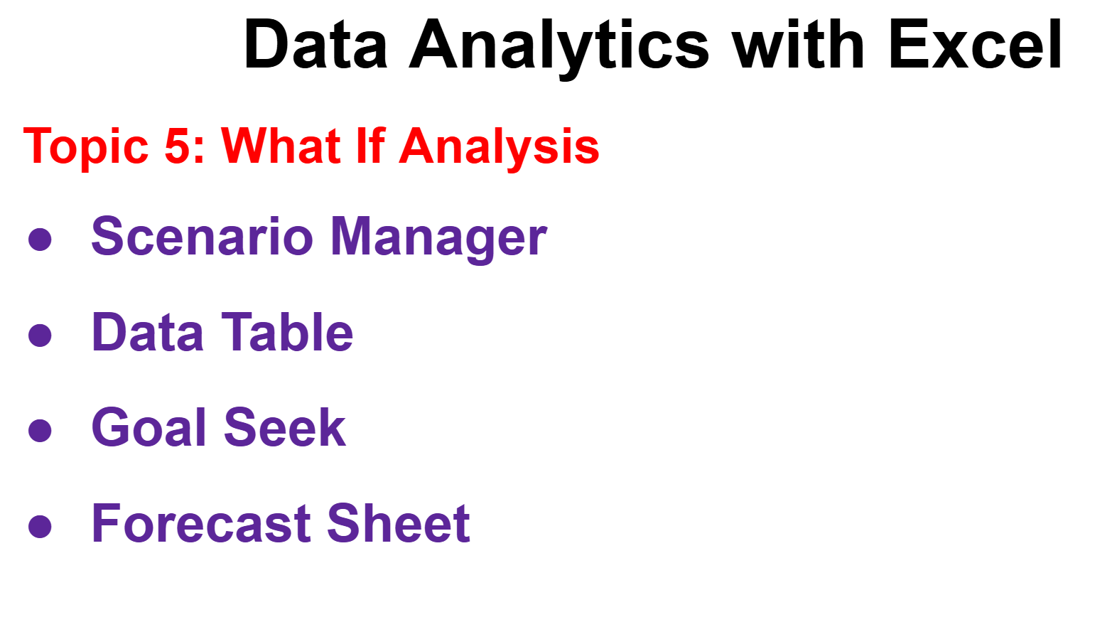 Data Analytics with Excel Course